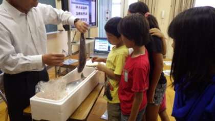 子どもたちは、たくさん質問をして養殖業だけでなく色々な漁業や魚の生態についても学びました。