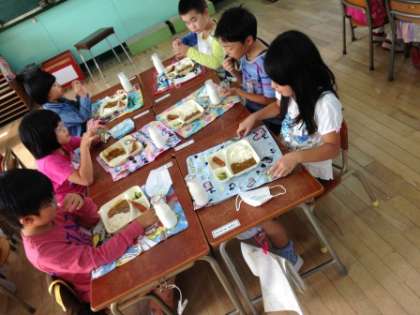 朝から、「今日はカレーだ!」「早く給食、食べたいなぁ」と喜ぶ子どもの声もありました。給食を運んでいる子どもたちも、いつもより笑顔で当番活動をしているように見えました。