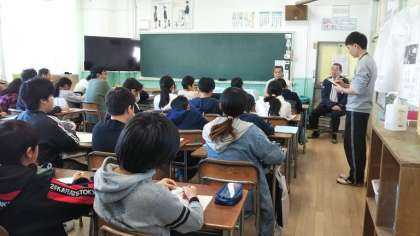 この日はゲストティーチャーとして地域の方お二人に来ていただき、お話を伺いました。