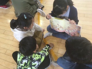6年生が1年生に絵本の読み聞かせをしています。