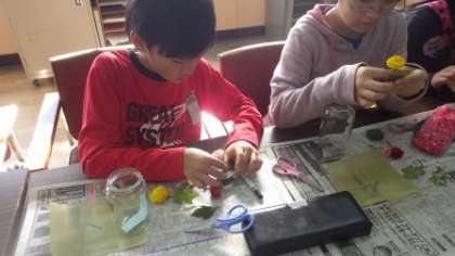 昨日のクラブ活動の時間に『ボトルフラワー』を作りました。
