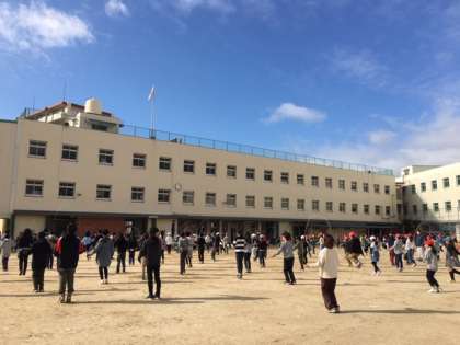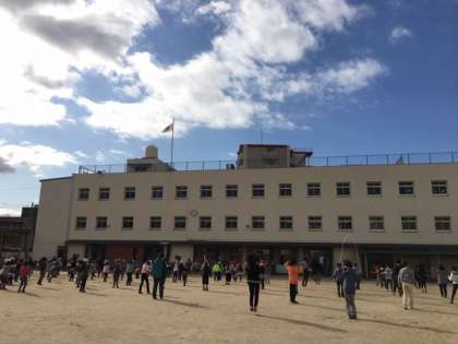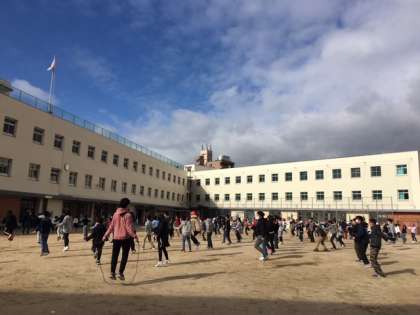 雨天のため、開始日が一日遅れましたが、本日は青空の下「耐寒なわとび」を行うことができました。音楽に合わせて、いろいろな跳び方に挑戦しました。終わった後に「しんどい〜」「もう無理〜」との言葉も聞こえてきましたが、しっかりと体力をつけて欲しいと思います。