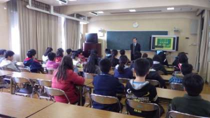 身近な話題も含めた講話を聞き、小学生向けのDVDを観ました。
