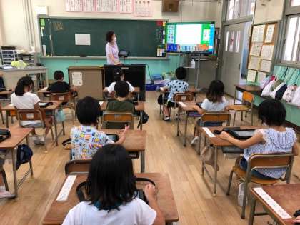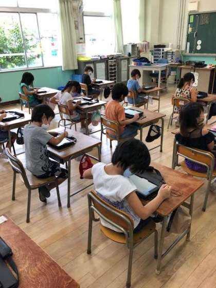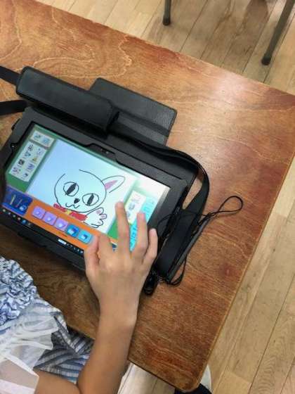 タブレットでお絵かきをしました。2回目のタブレットの学習を、子どもたちはドキドキしながらも、楽しみにしていました。