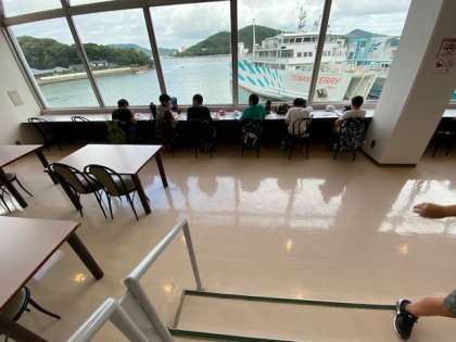 各々すきなメニューを頼んでキレイな景色の前で食べています。