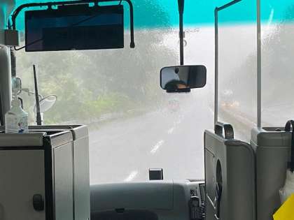 土砂降りの雨が降っておりましたが、徐行運転にて順調に走行中です。