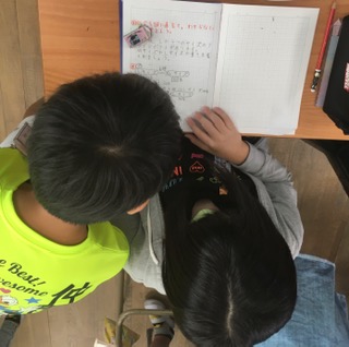 4年生の学習の様子です。算数科では、「割合」の学習をしています。ヒントが欲しい時には、お互いに教えあうようにしています。助け合って学ぶことで、教える側、教えられる側も学習の達成感を得ています。子どものたちの中に「今日の学習でがんばったことは、自分の考えをがんばって書いたことと、発表したことです。もっと勉強をがんばりたいです。」と学習をふり返っている子どももいます。少しずつできることを増やし、自信をつけていっています。