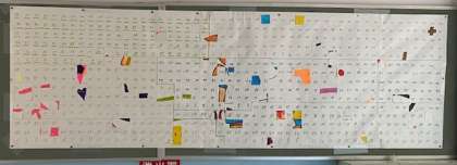 『相手の目を見て、自分から、進んで、元気よく』あいさつができた人にパズルのピースを渡しています。