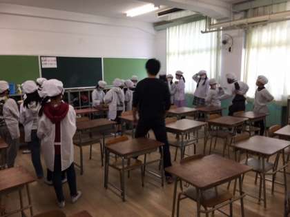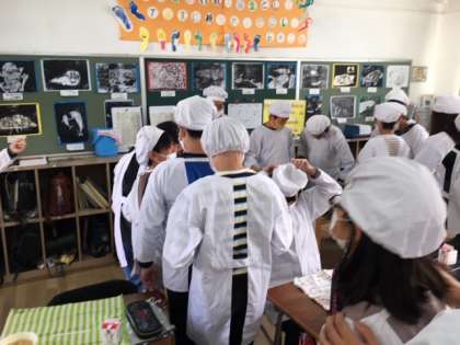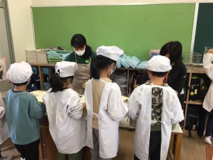 2年生、6年生、4年生の給食の準備の様子です。