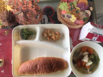 白身魚のフリッター、洋風煮、ブロッコリーのサラダです。