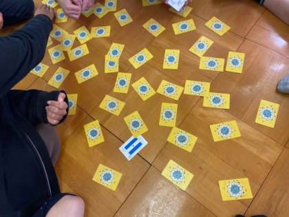 2年生は、5年生のお兄さん、お姉さんと一緒に国旗カルタを用いた真剣衰弱を行い、とても楽しんでいる様子が見られました。