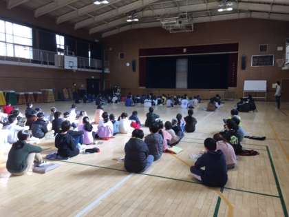 1年生から5年生までで卒業生を祝う会の練習をしました。