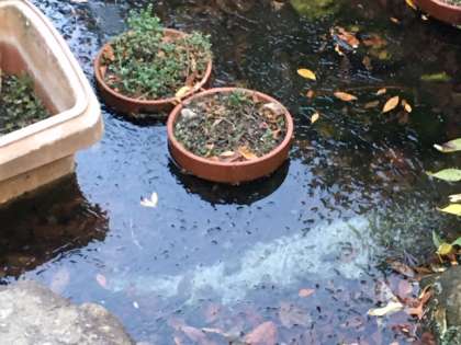 池に氷がはっています。