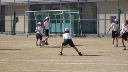 バスケットボールやサッカーのゴール型ゲームを学習し、初めてハンドボールに取り組みました。簡単そうで奥の深いゲームです。