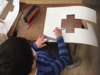 算数では直方体と立方体の学習をしています。今日は立方体の展開図を学びました。一人一人、面と面をどのようにつなげると立方体になるかを考えながら、展開図をかきました。いろいろな展開図が出来上がり、実際に箱にすることで、図形の理解を深めることができました。