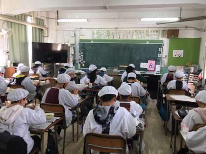 6年生の給食もあと7回になってしまいました。今日はいつもより一品多い給食になります。みんなおいしそうに食べていました。