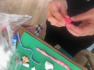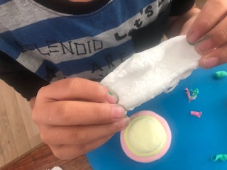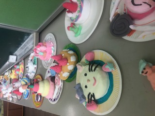紙粘土を使って、「おいしいおやつ」を作りました。