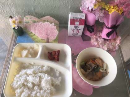 鶏肉のチリソース焼き、中華煮、だいこんの中華あえです。