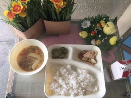 焼きとり、みそ汁、きゅうりのゆず風味です。