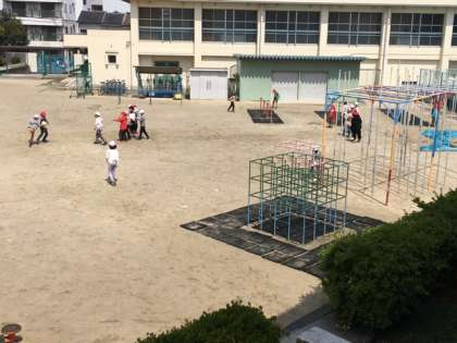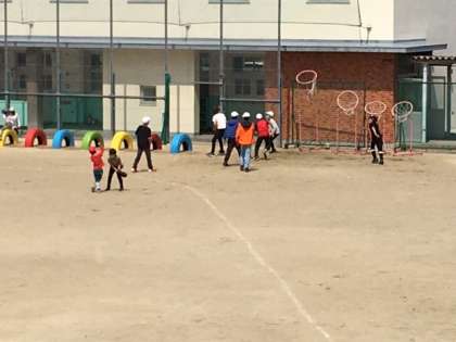 運動場の状態が悪いためか、遊んでいる子どもはいつもより少ないようです。