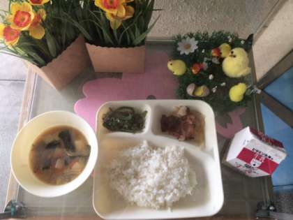 豚肉のしょうが焼き、みそ汁、じゃこピーマンです。