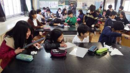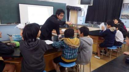 築港中学校の松山先生が5時間目に来てくださり、理科「電気とモーター」について教わりました。静電気を発生させる実験や電池・アルミホイル・磁石を使ったモーターの原理から楽しみながら科学を学ぶことができました。