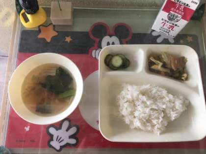ホイコウロー、中華スープ、きゅうりのビリ辛あえです。