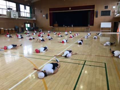 2年生と4年生は合同で体育をしています。
