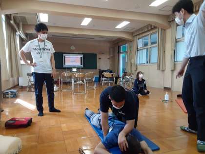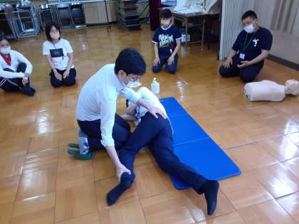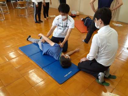 昨日の研修会では、吐物などによる窒息を防ぐための回復体位の取らせ方を講師の先生に教えてもらいました。