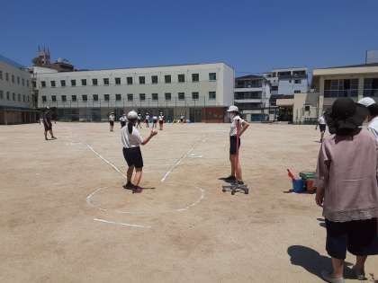 築港中学校から体育科の吉田先生が指導に来てくださっています。