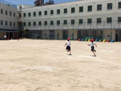 2、4年生のソフトボール投げと50m走です。