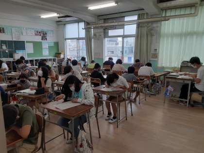 集中してテスト問題に取り組んでいます。
