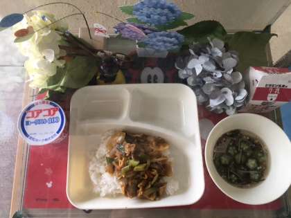 和風カレー丼、もずくとオクラのとろり汁、ヨーグルトです。