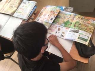 二枚目の写真は社会科の学習です。歴史の学習が始まり、資料から縄文時代の人々のくらしのようすについて調べています。