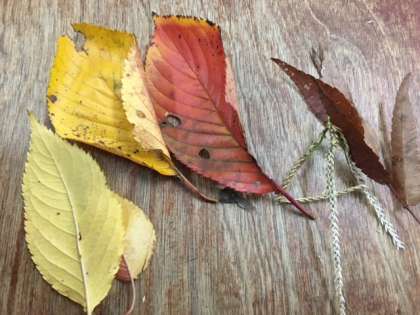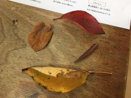 秋の葉っぱを観察しました。