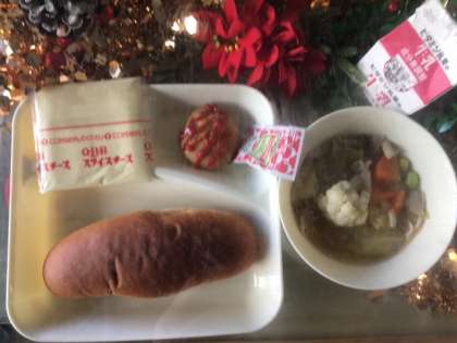 とうふハンバーグ、カリフラワーのスープ煮、スライスチーズです。