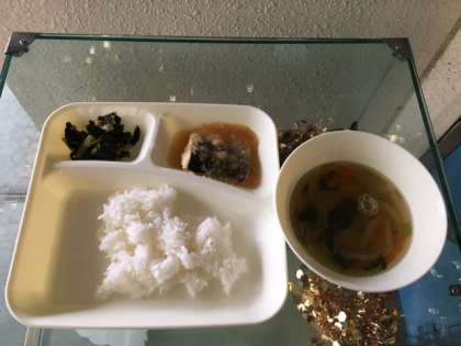 さばのみぞれかけ、すまし汁、こまつなの煮びたしです。