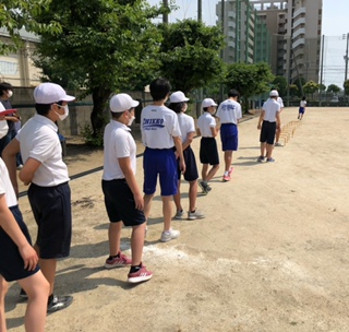 築港中学校へ部活動体験に行きました。先輩や先生方にいろいろ教わりました。少し緊張気味の子どもたちでしたが、終わった後はそれぞれの部活でしてきたことを報告し合っていました。