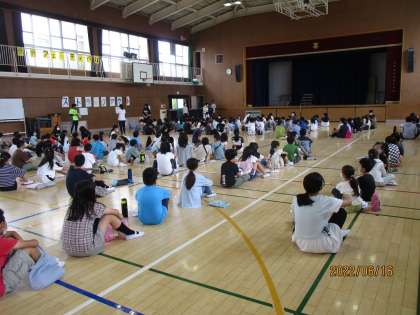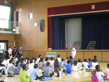 6月16日(木)に港晴フェスティバルを行いました。開会式では、久しぶりに、港晴小学校のキャラクター『港晴明小』ちゃんが遊びに来てくれました。