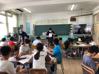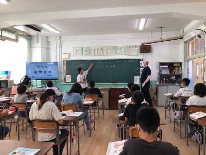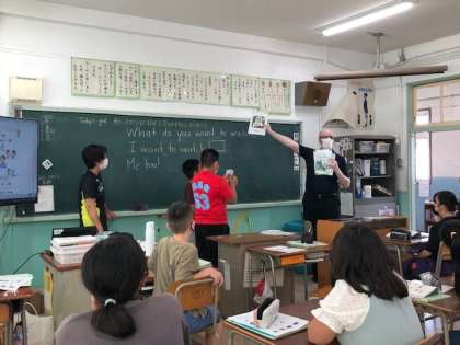 6年生は、「What do you want to watch?」と、見たいスポーツをたずね合う学習をしました。C-NETの先生にフェンシングについてのトリビアを教えてもらったり、カードを使って見たいスポーツを当てるゲームをしたりしながら、楽しく学習をしていました。