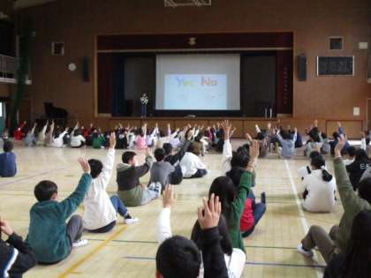 普段行っている仕事を、ニュース形式で紹介し、その後、集会委員会の仕事についてのYES・NOクイズをしました。