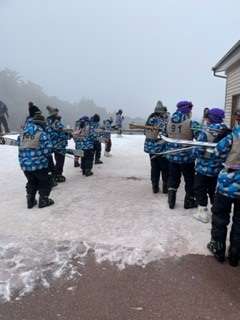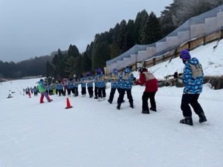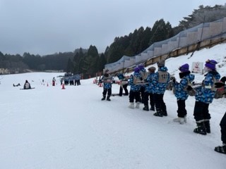 さっそく板を借りて、ゲレンデの下へ歩いて降りて行きます。