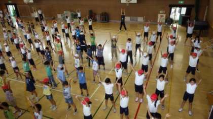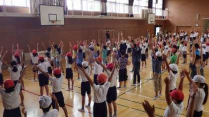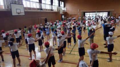 今朝の児童集会の時間には、ラジオ体操の練習をしました。