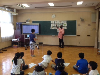 英語の歌、まちがい探し、動物のカードを使ったゲーム、イス取りゲームなど、盛りだくさんの内容で、楽しく学習活動ができました。