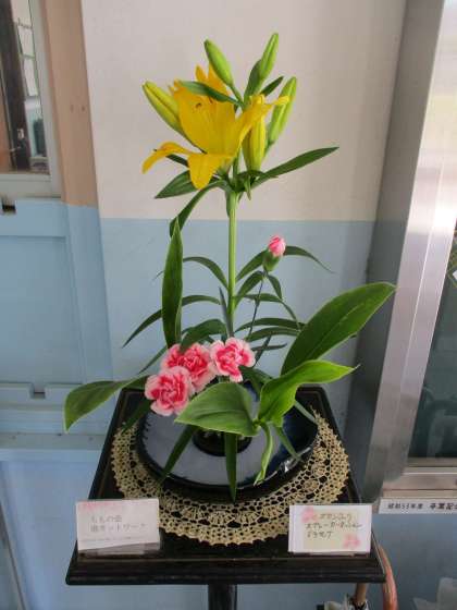 今回のお花は、「スカシユリ・スプレーカーネーション・ドラセナ」です。