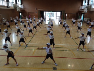練習を始めてまだ一度も運動場での練習ができていません。そのため、隊形移動などの練習も、すべて体育館の中でしています。