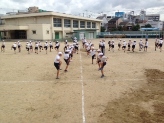 今日、ようやっと運動場での練習を始めることができました。体育館と比べると、とても広く感じます。子どもたちのかけ声も、なかなか響かない……