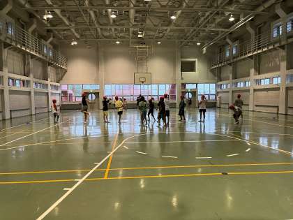 今日は、朝から大雨のため、体育館を借りてみんな遊びをしています。