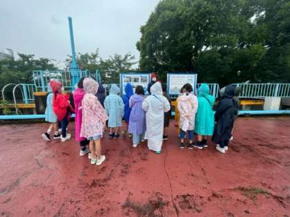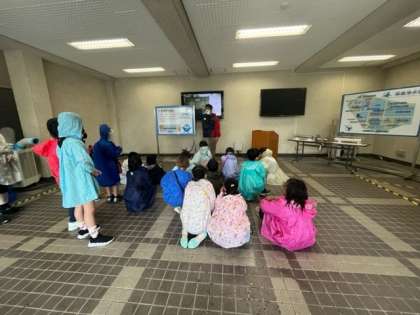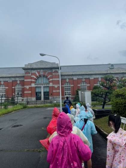 雨が降っていたので、雨具を着て施設の中を見学させていただきました。
