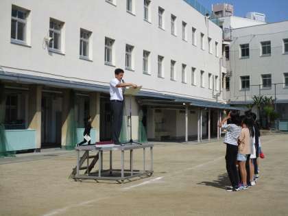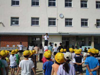今日は港晴小学校の創立記念日です。校長先生から、創立63年目になる港晴小学校ができたときのお話などがありました。